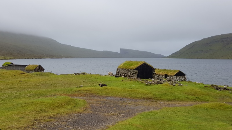Mystisch sieht das Archipel, das aus 18 erdgeschichtlich relativ jungen Inseln besteht, aus - so im Nebel (die Färöer sind etwa 3x so alt wie Island, also ca. 60-70 Mio Jahre)! Nach einer schönen Fahrt durch Fjorde im Regen erreichen wir „unser“ Häuschen mit Grasodendach und sind glücklich: Endlich haben wir Zeit, die „grünen Vulkane“ mal aus der Nähe zu erkunden!