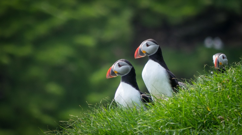Die Wanderung zum Leuchtturm von Mykineshólmur auf dieser kleinen, grünen, echten Vogelinsel führt uns an spektakulären Aussichten vorbei! Unterwegs treffen wir hier auf Eissturmvögel, Dreizehenmöwen, Basstölpel, Trottellummen und natürlich auf Papageientaucher (= „Lundis“ oder auch „Puffins“). Der Weg führt direkt durch eine ihrer Kolonien (mit unzähligen Bruthöhlen). ♥ Wir sind vorsichtig und halten Abstand (die Vogelbilder sind die einzigen Aufnahmen, die mal nicht „nur mit dem Handy“ gemacht wurden - sondern mit „dem Tele“ - Danke Tom ). Faszinierend ist, dass die Papageientaucher nicht nur „hübsch und putzig“ sind, sondern auch neugierig - und sich ebenso für uns zu interessieren scheinen, wie wir für sie.