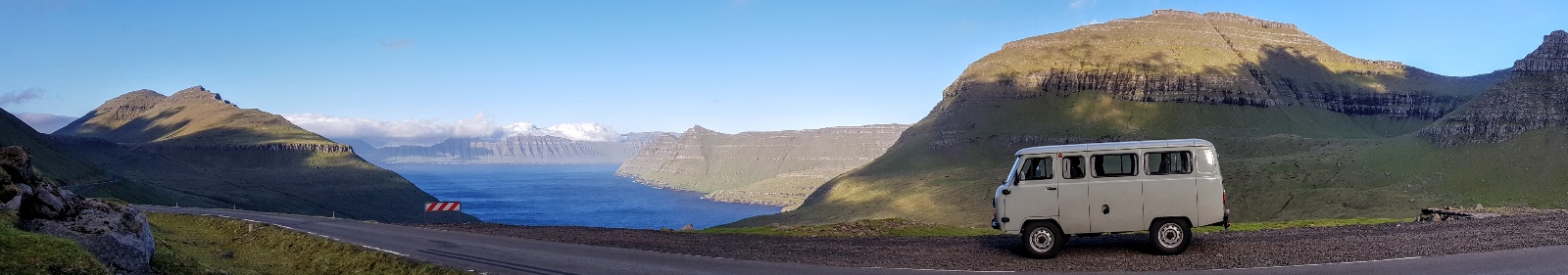 Heute geht's mit OLGA auf die „Männerinsel“ (= ja, das bedeutet „Kalsoy“ wörtlich übersetzt ). Wir brechen auf, um den nördlichsten Leuchtturm der Färöer zu erkunden. Die kleine Fähre auf diese Außeninsel verkehrt nur drei Mal am Tag und kann dabei maximal 17 Autos transportieren! Das wird spannend - mal sehen ob wir es zurückschaffen…