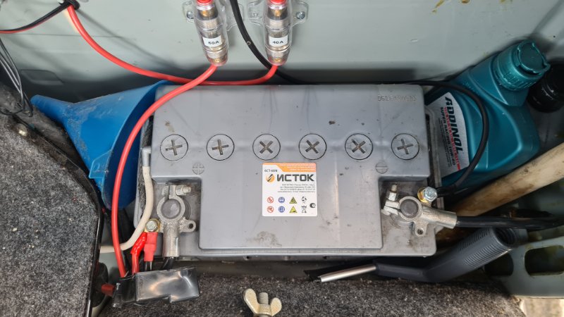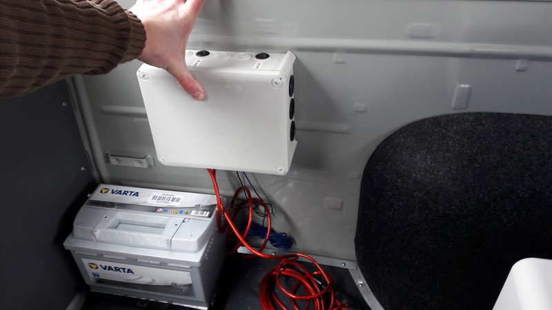 Damit das kleine russische „Campingbrot“ auch ein wenig autark laufen kann, sollte eine Zweitbatterie rein. Energie für 3h Kühlen oder Heizen - ohne danach nicht mehr Starten zu können. Ein Schaltkasten mit Trennrelais und Spannungsüberwachung soll Anschlussmöglichkeit für weitere 12V Verbraucher (2x KFZ-Steckdosen), Ladestation für Mobiltelefone (2x USB-Steckdosen) bieten und das manuelle oder automatische Trennen der Batterien ermöglichen. Dafür wurde das D+ Signal der Lichtmaschine abgegriffen.