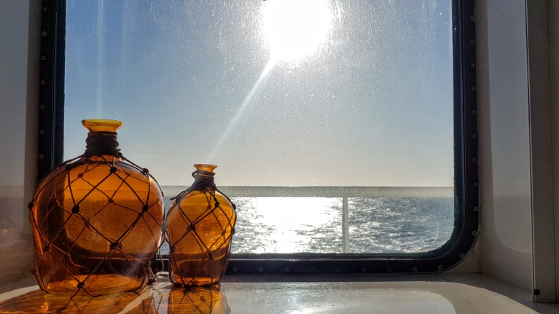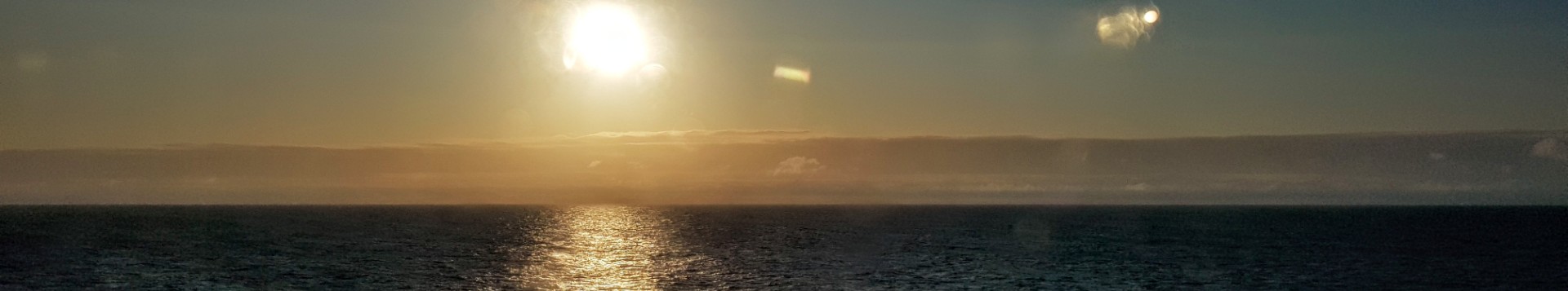 Am nächsten Morgen hat sich aber alles beruhigt und wir genießen den Sonnenaufgang und den laaaangen Tag auf See.