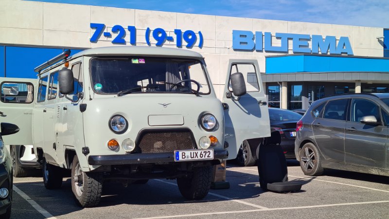 Unterwegs gibt unsere bereits reparierte Wischwasch-Anlage nun komplett „den Geist auf“. Wir versuchen unser Glück in einem meiner skandinavischen Lieblingsgeschäfte. Im BILTEMA in Steinkjer werden wir wirklich fündig. Wir ersetzen die russische Scheibenwaschanlage durch ein westliches Universal-Produkt. Etwas fummelig - aber am Ende erfolgreich! 8-)