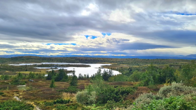 Auf leeren Straßen kommen wir gut voran. Wir wundern uns: Gab es schon immer so viele Maut-Stellen auf der E6? - Wir sind uns einig: Wenn schon Maut, dann richtig! Wir machen deshalb einen kleinen „Offroad-Schlenker“ über den „Peer Gynt Vegen“ - eine der schönsten Gebirgsstrecken Norwegens. Der unbefestigte Weg führt über weite Hochebenen, Seen und Moore.