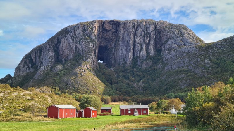 Es geht zum Torghatten in der Nähe von Brønnøysund, dem Berg der in seiner Mitte ein faszinierend großes Loch hat (etwa 40 m hoch und 160 m lang). Man kann es schon aus der Ferne sehen.
