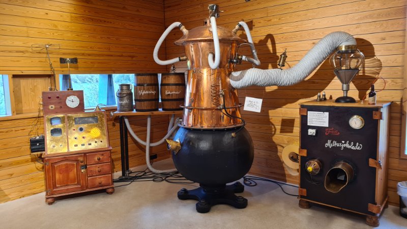 In Avdal machen wir Rast und staunen über eine Rakete am Straßenrand. Sie gehört zum Aukrust Center. Das ist ein süßes Museum und eine Art „Erlebnishaus“, das das Lebenswerk des norwegischen Vielkünstlers Kjell Aukrust beherbergt. Hier erleben wir Zeichnungen, Gemälde, Figuren und humorvolle, fantasievolle Erfindungen - inklusive einer funktionierenden Milchschokoladenmaschine. =)