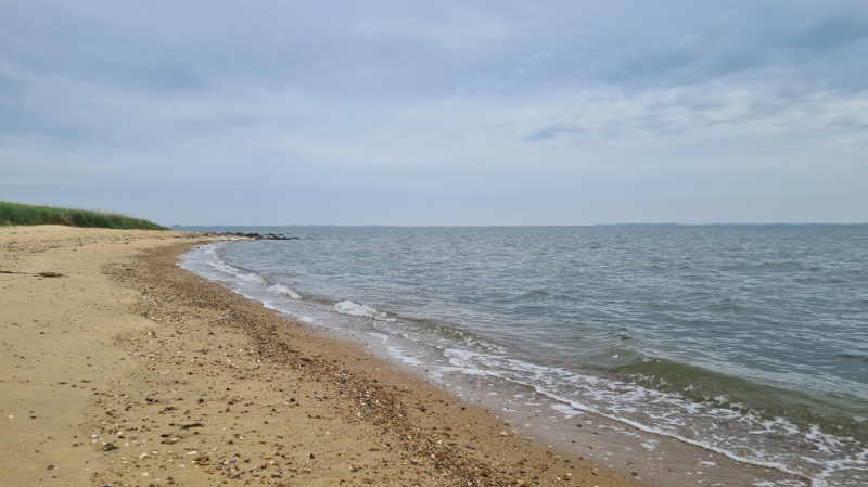 - Auch ist der Strand zum Teil übersäht mit Amerikanischen Schwertmuscheln, die über Schiffe nach Europa kamen (so lernen wir später)