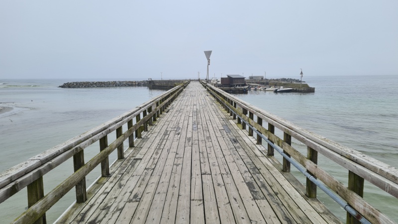 Selbst Regenwetter hat hier auf Bornholm seinen Reiz. Im Nebel wandern wir am Balka Strand in Richtung Snogebæk. Hier gibt es neben einer aktiven Räucherei noch etwas ganz Besonderes: