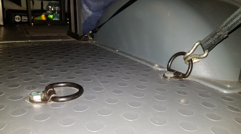 Die während der Zulassung des UAZ angebrachten Zurrösen waren zwar stabil, aber zu unpraktisch. Als nützlich erwiesen sich Zurrösen aus einem Mercedes Sprinter. Diese lassen sich bei Nichtbenutzung schön herunter klappen (so dass man nicht darüber stolpert).