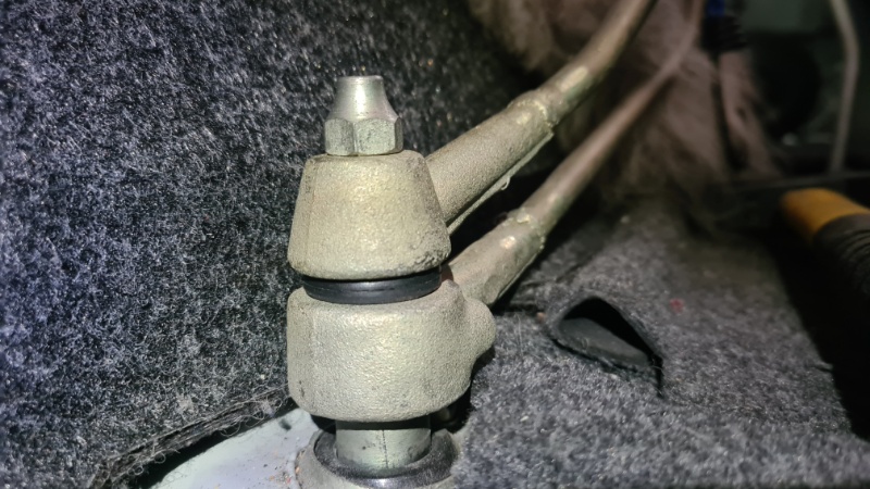 Um die Vibration der Schalthebel zusätzlich zu dämpfen, wurde eine dicke und robuste Gummiunterlegscheibe (ursprünglich für Kabeldurchführungen) zwischen die beiden Schalthebel des Verteilergetriebes montiert. (Das war mal ein Tipp von Günter, Danke!).