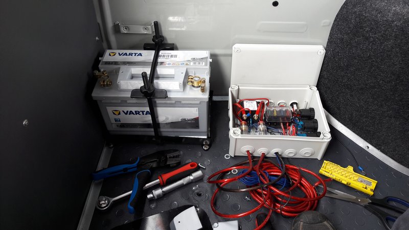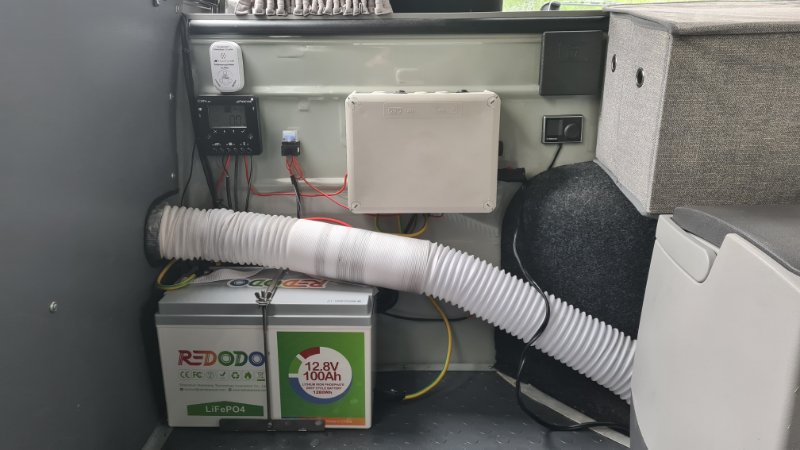 Die Zweitbatterie wurde im Rahmen des Einbaus der Solaranlage von 74Ah auf 140Ah aufgerüstet. Sie liefert nun genug Energie für Standheizung und alle internen Verbraucher. - Mal sehen ob Olga in Zukunft noch eine LiFePO4 Batterie bekommt. Fortsetzung folgt…