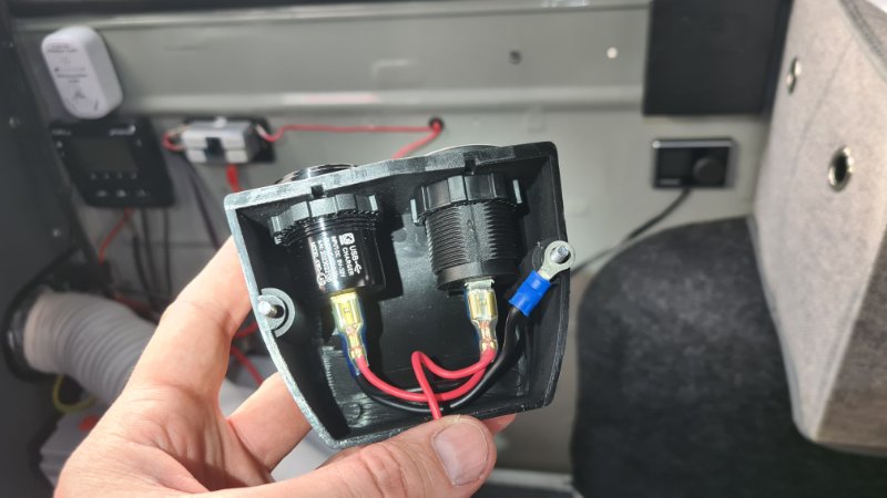 Damit das kleine russische „Campingbrot“ auch ein wenig autark laufen kann, sollte eine Zweitbatterie rein. Energie für 3h Kühlen oder Heizen - ohne danach nicht mehr Starten zu können. Ein Schaltkasten mit Trennrelais und Spannungsüberwachung soll Anschlussmöglichkeit für weitere 12V Verbraucher (2x KFZ-Steckdosen), Ladestation für Mobiltelefone (2x USB-Steckdosen) bieten und das manuelle oder automatische Trennen der Batterien ermöglichen. Dafür wurde das D+ Signal der Lichtmaschine abgegriffen.