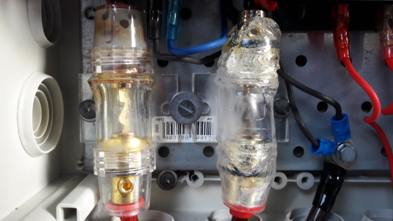 Schlechte Materialqualität machten ein Update der Zweitbatterieschaltung notwendig. Die Zweitbatterie wurde nicht mehr geladen, die Kabel waren durchgebrannt und die Sicherungshalter geschmolzen! Gut dass nichts weiter passiert ist.