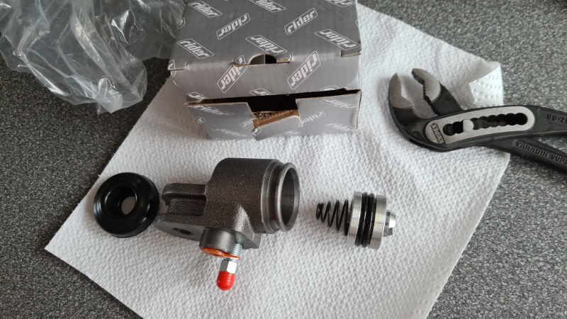 - Tausch aller Bremszylinder (hier war nur ein Zylinder erneuert worden, und dann auch noch das falsche Ersatzteil, ein weiterer war undicht, zwei waren fest)