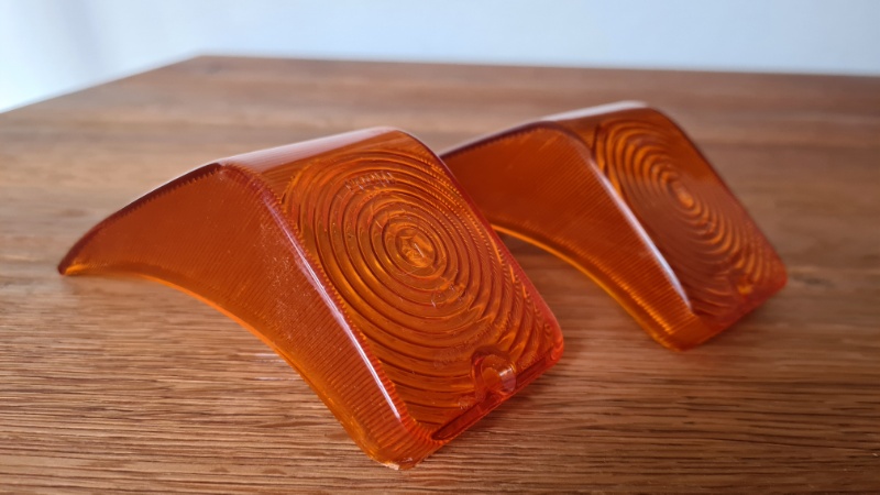 Zugegeben nur etwas Kosmetisches: Endlich habe ich auch originale Blinkergläser auftreiben können und die alten Blinker-Einsätze mit den neuen Gläsern aufbereitet.