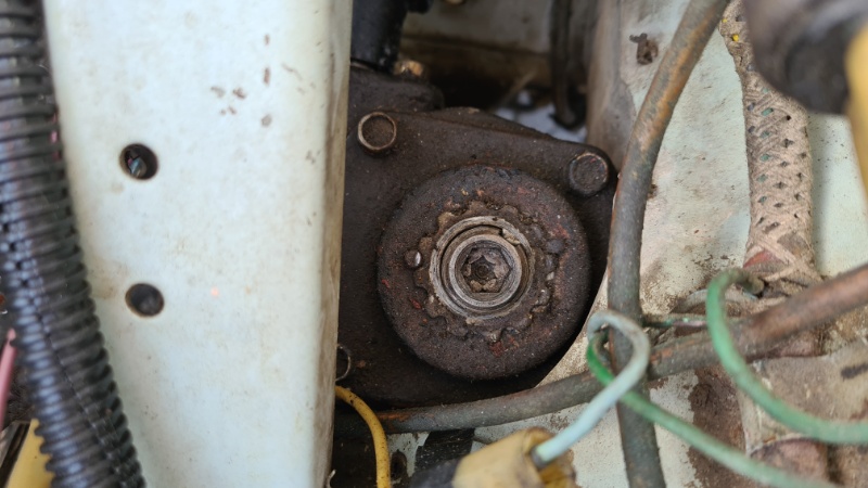 Das angeblich vom Vorbesitzer abgedichtete Lenkgetriebe wurde mit dem richtigen Öl befüllt (es war dünnes Motoröl statt Getriebeöl drin) und am Stirndeckel neu abgedichtet. Endlich tropffrei wurde das Lenkgetriebe jedoch erst nach Tausch des Lenkgetriebeöls gegen Oldtimer-Getriebefließfett (Danke für den genialen Tipp an Stan). Mit einer Fettpresse und einem selbstgebasteltem Gummi-Adapter konnte es gut eingefüllt werden.