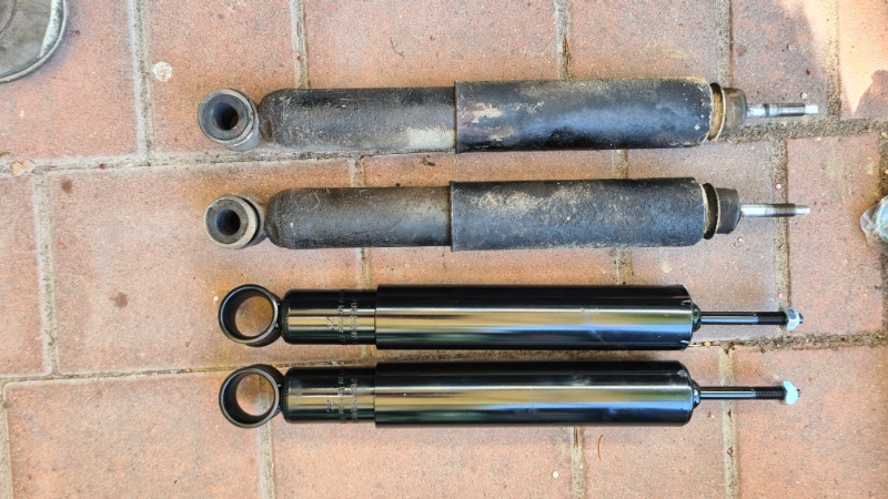 Update: Das Ersetzen der hinteren Stoßdämpfer war spannend, da man zum Lösen der (defekten) Gewinde im Kofferraum sitzen musste. Endlich gehört das Klappern der (trockenen) Dämpfer nun der Vergangenheit an.