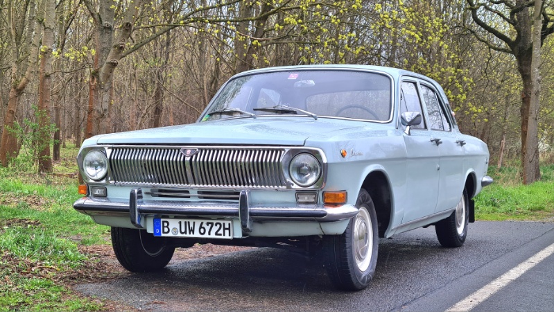 Rost! - Der Wolga hatte wohl mal einen Unfall, deshalb wurde in der Vergangenheit auch der Kotflügel vorn links gewechselt. Offensichtlich gegen ein richtig schlechtes Ersatzteil, denn hier ist der Wolga jetzt durchgerostet.