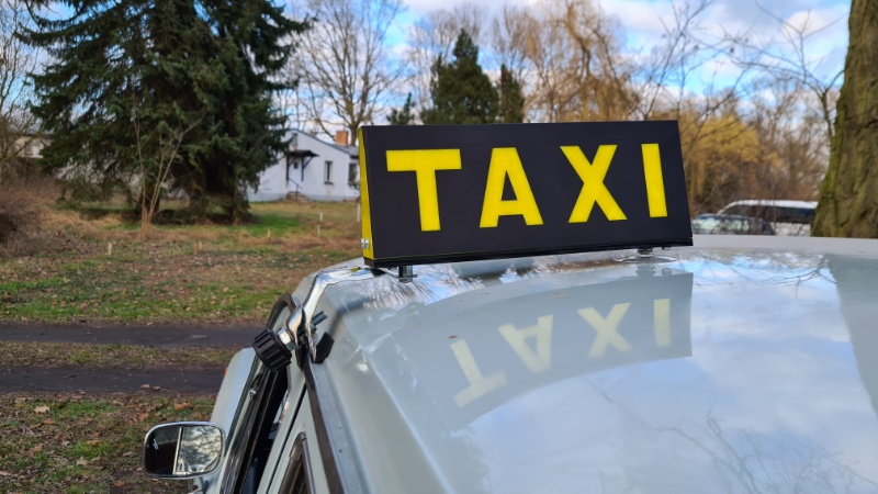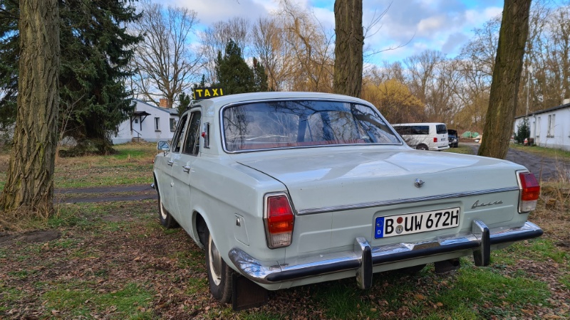 Der Wolga GAZ 24 war das TAXI in Ost-Berlin. Warum also nicht ein authentisches Schild für das historische Fahrzeug besorgen?