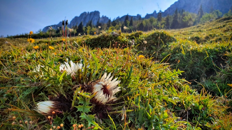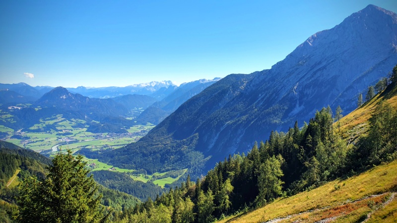 Majestätisch erheben sich fast plötzlich hohe Berge aus der Wiesenlandschaft