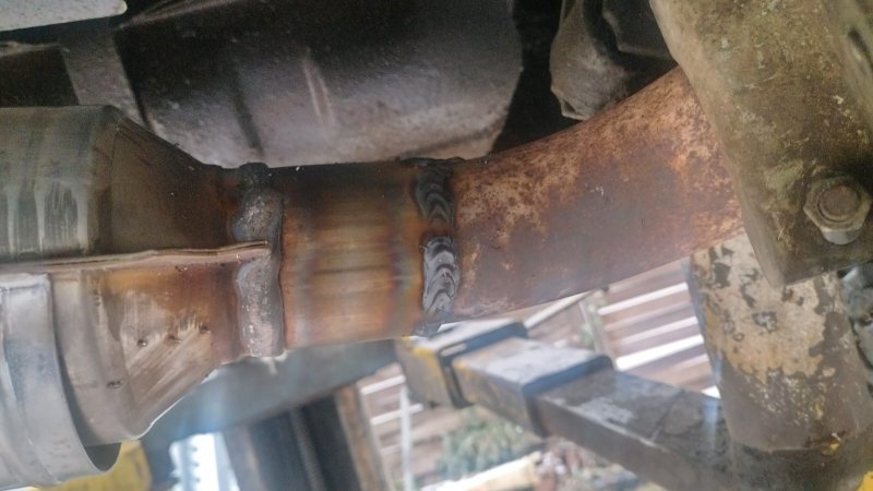 Der Einbau erfolgte ohne Probleme. Der alte Katalysator wurde mit Trennschleifer herausgetrennt. Der neue Katalysator wurde so dimensioniert, dass seine Rohre leicht über die originalen Rohrenden geschoben werden konnten. Das anschließende, umlaufende Verschweißen konnte sogar ohne Ausbau der Rohre direkt am Fahrzeug erfolgen. - Nochmal ein RIESEN-Dankeschön an Sven für die kompetente Schrauberleistung. ♥