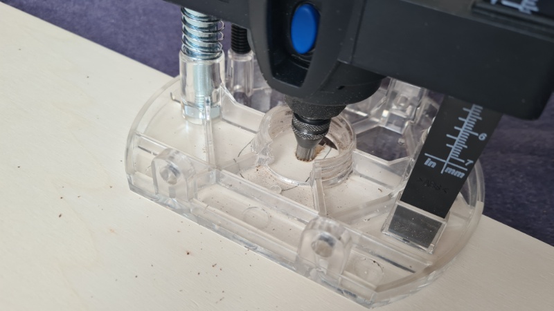 Schraubmagnete (TRU COMPONENTS W10L10T3-M3 Permanent-Magnet Rechteckig (L x B x H) 10 x 10 x 3) sollen diese Aufgabe übernehmen. Dazu habe ich an der Stirnseite mit der Oberfräse für ein paar (fast) passende Vertiefungen gesorgt und die Magnete anschließend verschraubt,