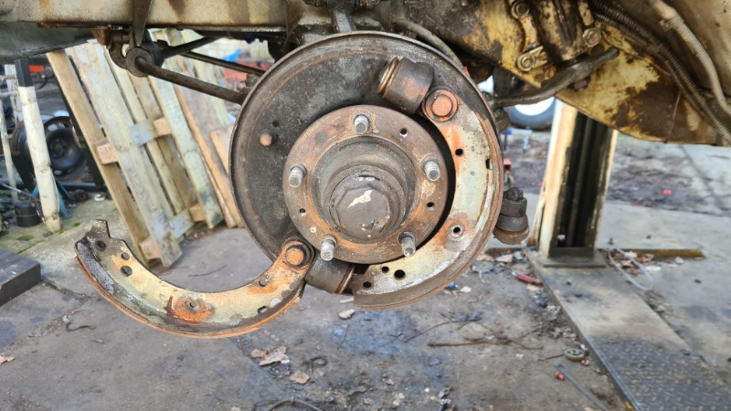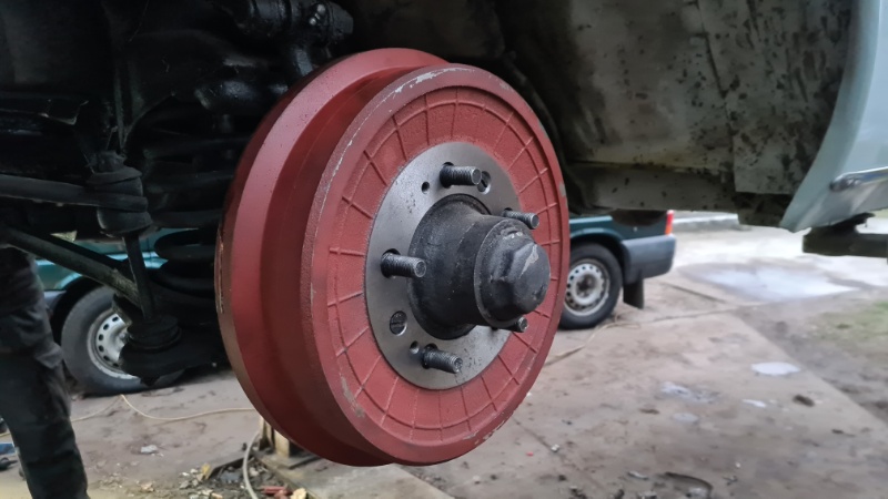 Mit den neuen Bremsbelägen fuhr der Wagen lange Zeit gut. Allerdings zog er beim Antippen der Bremse oft leicht nach einer Seite. Zusätzlich wurden Quitschgeräusche stärker. Und beim Herunternehmen der Trommeln vorn stellte sich heraus, dass die Beläge ungleich abgefahren waren.