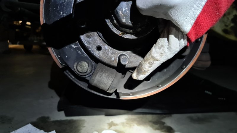 Da die Rechte Backe der linken. vorderen Trommel unten am Radbremszylinder zu stark abgefahren war, haben wir die Einstellschraube nach rechts unten gedreht, damit Backe nach rechts oben kommt. Genau das brachte den gewünschten Erfolg! = Er bremst wieder ordentlich - ohne Ziehen und Quietschen.