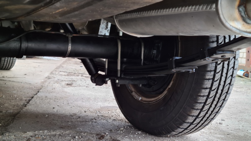 Die größte Fahrwerks-Baustelle dauerte auch am längsten. Die Hinterachse machte üble Mahlgeräusche (Lagerschaden) und die Blattfedern waren nach fast 40 Jahren einfach schon müde und schief.