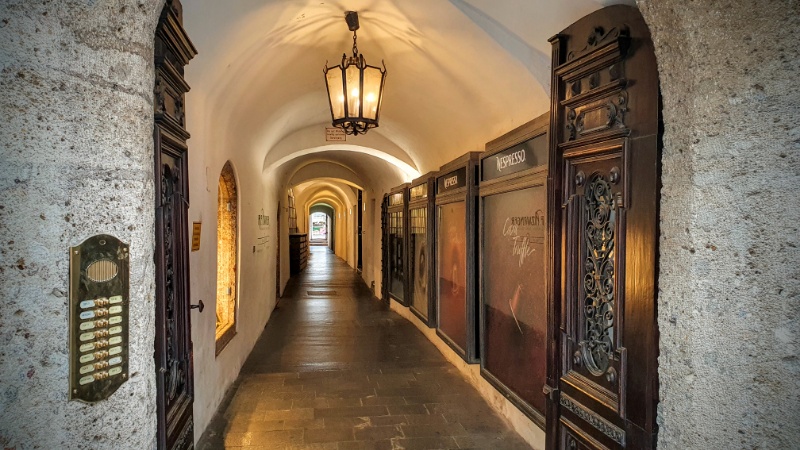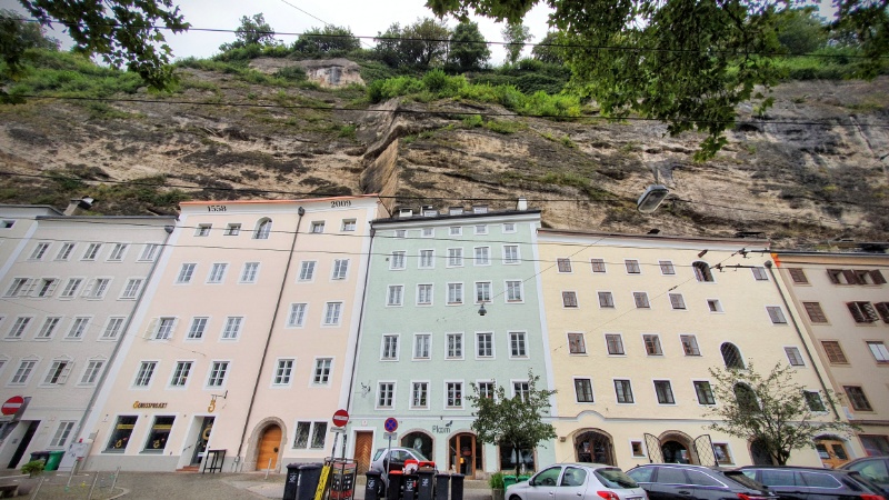 - Wir staunen über das alte Gemäuer (Häuser im Fels) in Mozarts Geburtsstadt
