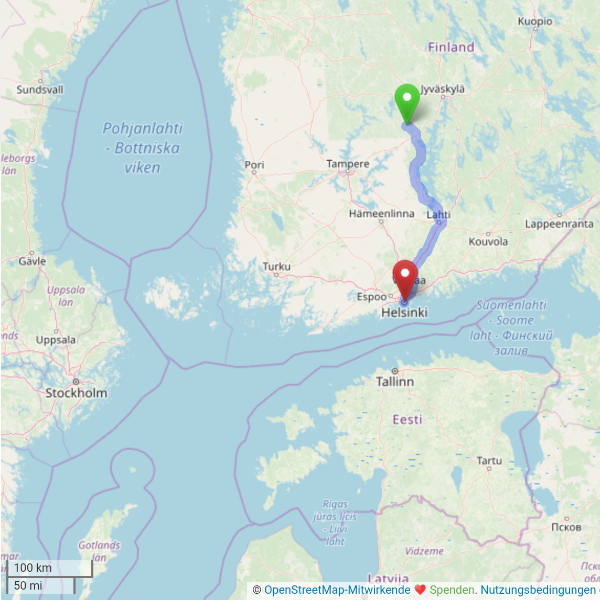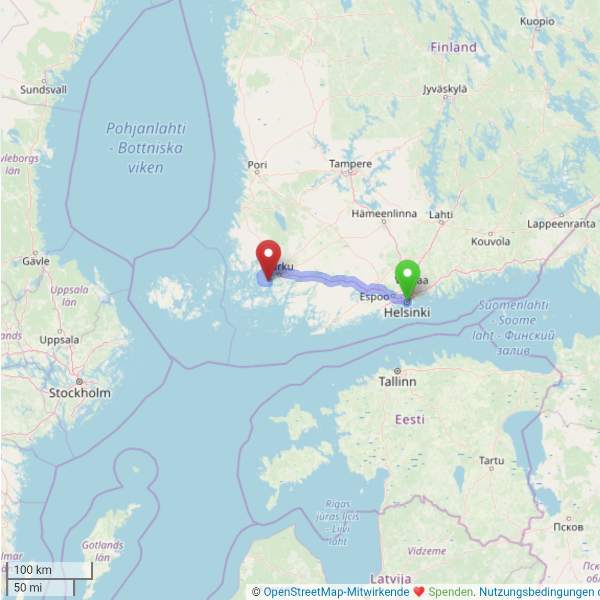Nach 611 Seemeilen (1132 km) und einem ordentlichen, nächtlichen Wellengang kommen wir am nächsten Morgen erholt (und ganz ohne Flug-Hektik) direkt in der finnischen Hauptstadt Helsinki an. :-D