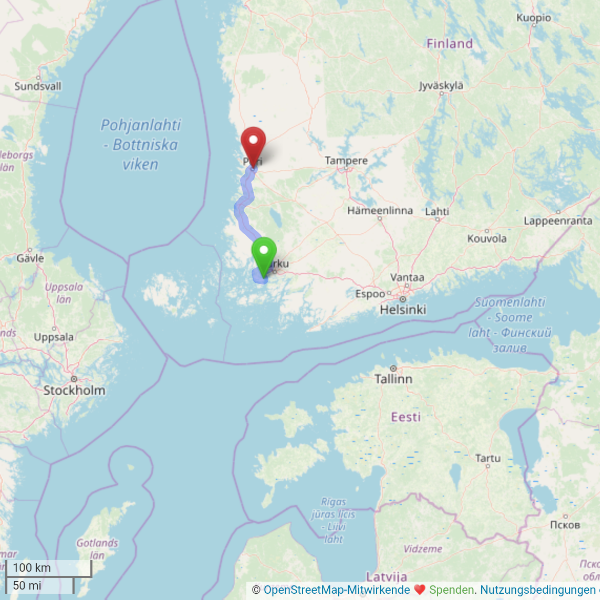 Die anschließende 280km lange Fahrt durch finnische Wälder in Richtung Turku lässt uns das erste Mal richtige Waldluft schnuppern. Finnland ist das Land mit der saubersten Luft von ganz Europa lesen wir. Das können wir bestätigen (und hoffentlich nicht zu stark beeinträchtigen mit unserer Olga :-P). Auch das Trinkwasser ist sauber und schmeckt prima (dies wird hier sogar extra vermarktet :-P).
