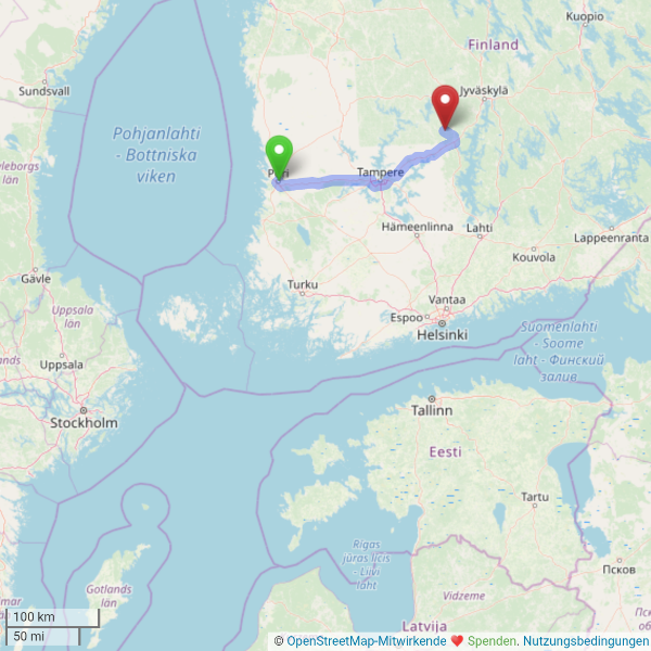 On the road again. 8-) Bei Regenwetter geht es heute weiter Richtung Osten! Auf halber Strecke kommen wir dabei in Tampere vorbei!