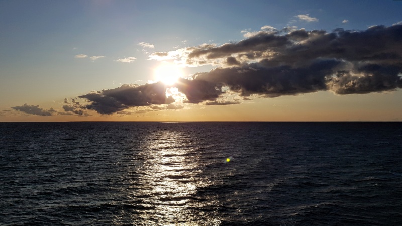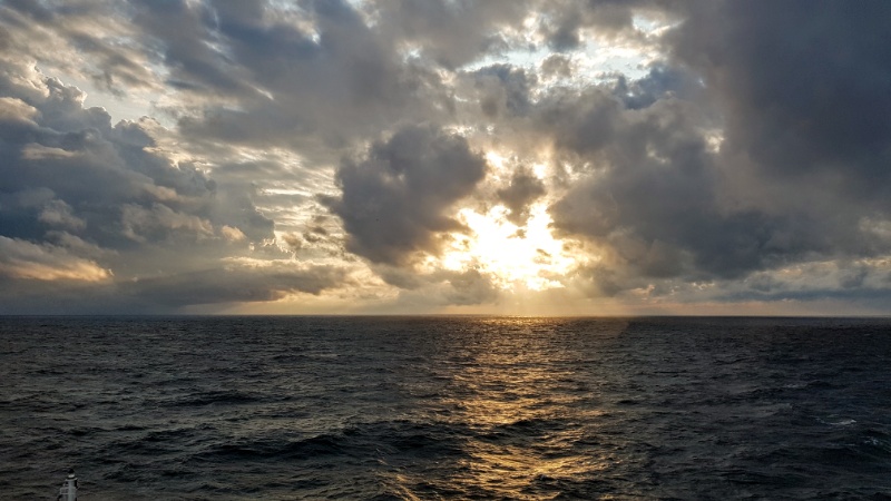 Am nächsten Morgen hat sich aber alles beruhigt und wir genießen den Sonnenaufgang und den laaaangen Tag auf See. :-D