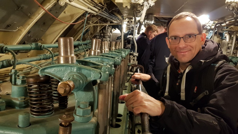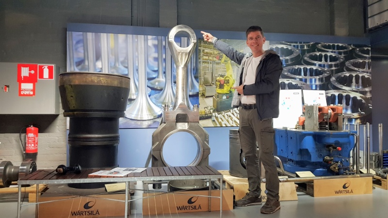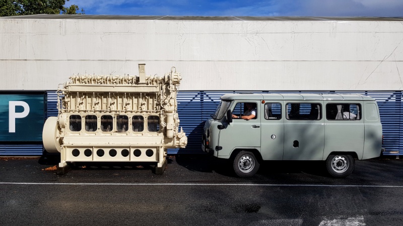 Das war wirklich faszinierende Technik. Wir verabschieden uns mit einem schönen Größenvergleich von Olga mit einem Schiffsdiesel. =)