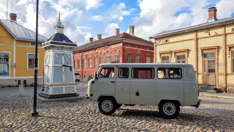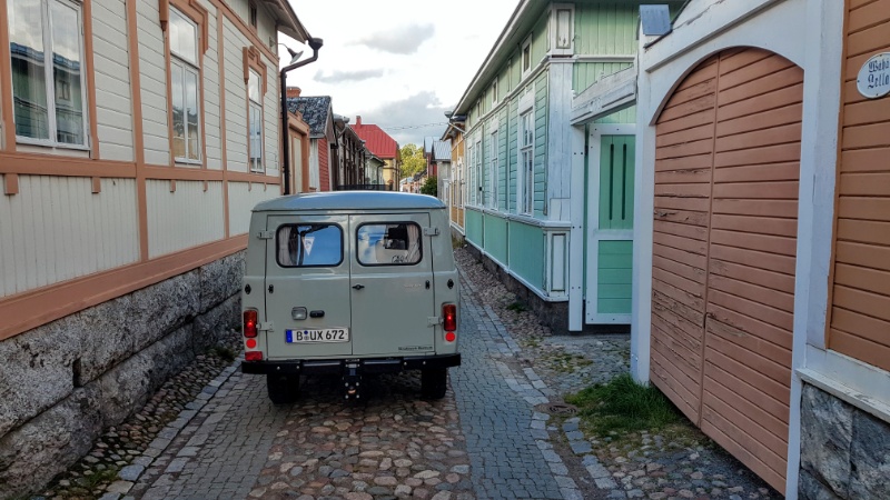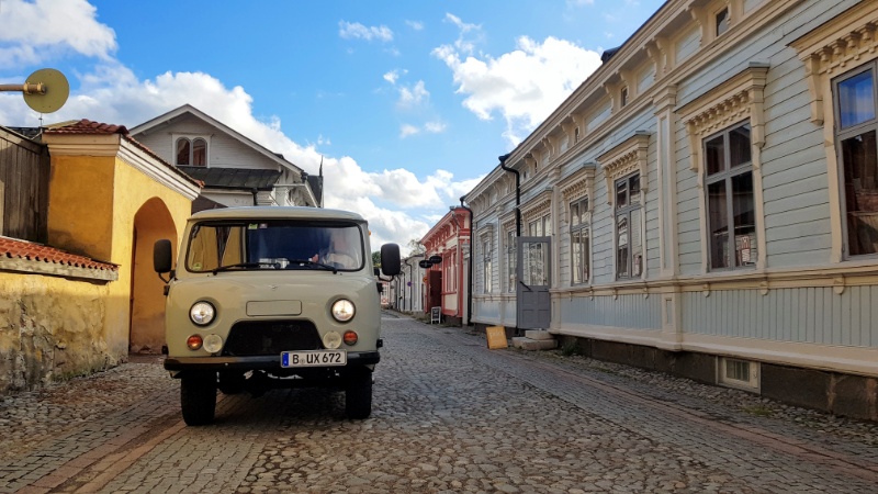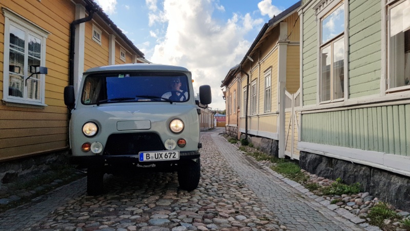 Ein Spaziergang (oder eine Spazierfahrt im Russenblech :-D) durch die Altstadt gleicht dem Betreten einer Märchenwelt. Die alten, bunten Holzhäuser, die dekorativen Tore und das Kopfsteinpflaster lassen die Tour zu einer Zeitreise werden. - (Nein, wir sind hier nicht im russischen Zarenreich, wie die Bilder, die wir heute mit Olga machen, vermuten lassen… :-P).