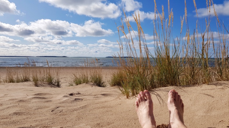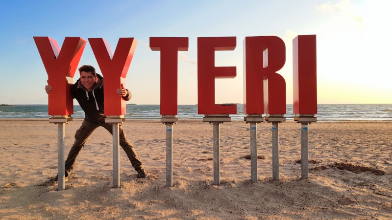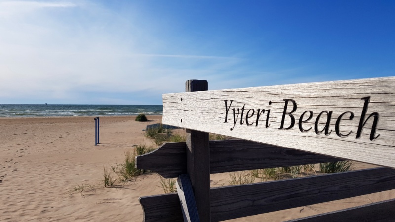 Nach weiteren 100km in Ricntung Norden haben wir es geschafft. Wir sind angekommen am schönsten Strand Finnlands (und zugleich einem der längsten Sandstrände Skandinaviens überhaupt)! YYTERI Beach. (Ja, richtig, mit zwei „Ypsilons“! LOL Damit das auch alle glauben, gibt es an diesem schönen Fleckchen Erde ein selbstbewusstes Riesen-Namensschild am Strand! :-P