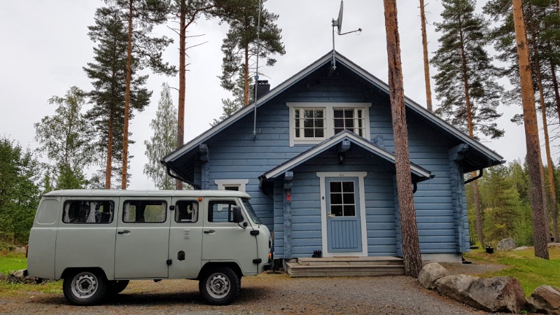 Über kleine Landstraßen geht es weiter zu unserem ersten Domizil, einem Häuschen an der Ostsee. 8-) Und, ja (so freuen wir uns bei der Ankunft), ganz typisch für Finnland - natürlich mit eigener Sauna! :-D