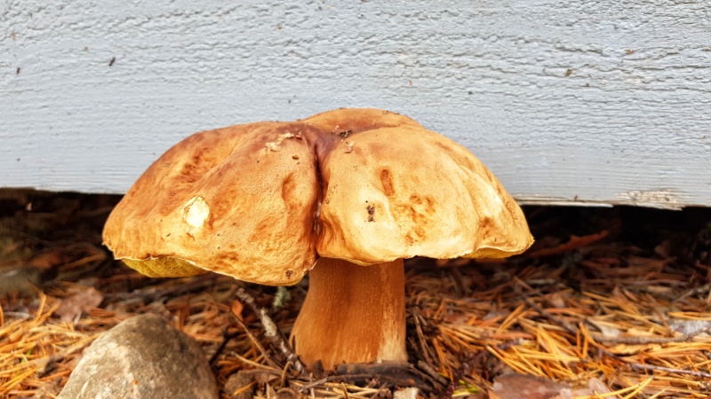 Auch vor „unserem Haus“ wachsen schöne Steinpilze - im wahrsten Sinne des Wortes direkt vor der Tür! (Zu Hause sagen wir „Pilze suchen“, hier heißt es passenderweise „Pilze sammeln“.)