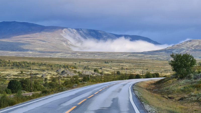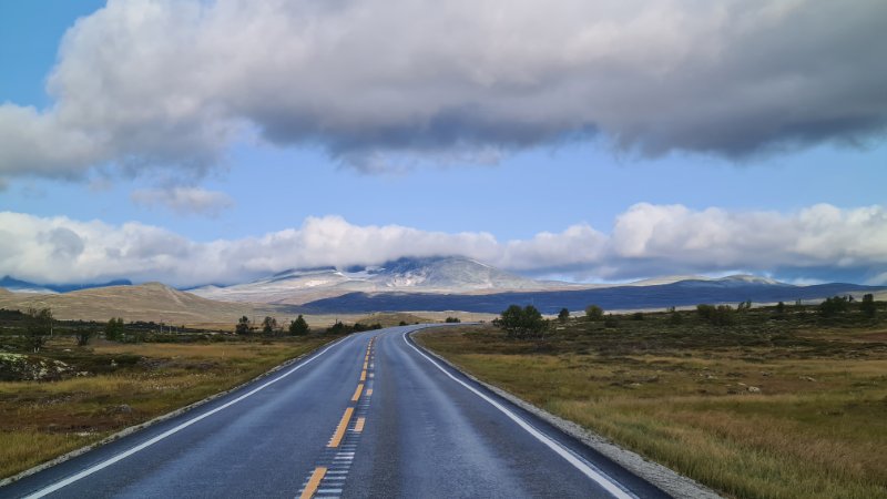 Auf leeren Straßen kommen wir gut voran. Wir wundern uns: Gab es schon immer so viele Maut-Stellen auf der E6? - Wir sind uns einig: Wenn schon Maut, dann richtig! Wir machen deshalb einen kleinen „Offroad-Schlenker“ über den „Peer Gynt Vegen“ - eine der schönsten Gebirgsstrecken Norwegens. Der unbefestigte Weg führt über weite Hochebenen, Seen und Moore.