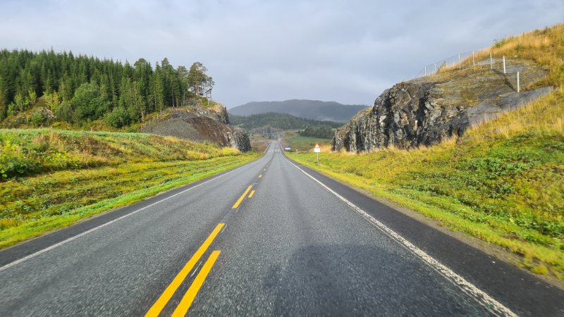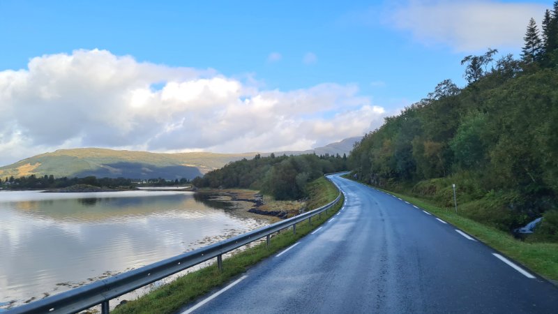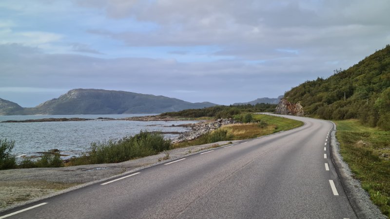 Dieser Weg ist gleichzeitig auch das Ziel unserer Reise . Der „Kystriksveien“ erinnert auf dem heutigen Abschnitt an unsere Kindheit mit der „Berg- und Talbahn“. Und das ist mit dem schwammigen Fahrwerk unserer Olga ein ganz besonderes Fahrerlebnis! :-P