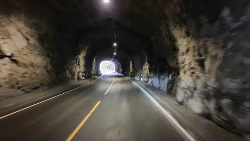 Als wir morgens in den Berg von Hell fahren, spüren wir, warum am Eingang gewarnt wurde, dass es im Tunnel zu gefährlicher Kondensation kommen kann. Es ist im Berg gefühlte 20°C wärmer als draußen. Das führt zu merkwürdigen Druck-Unterschieden, die wir an den Ohren spüren, und zu starken Windböen (!) im Tunnel. Sind wir doch in der Hölle? LOL