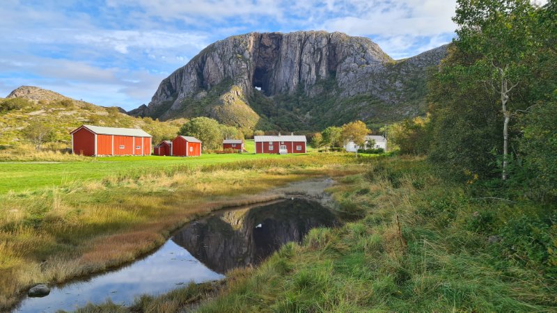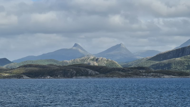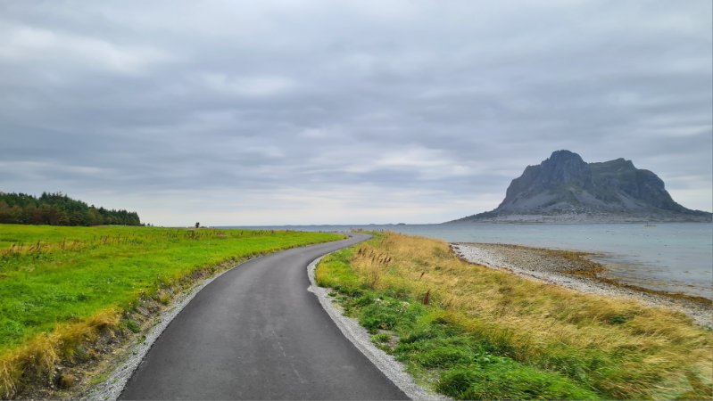 Es geht zum Torghatten in der Nähe von Brønnøysund, dem Berg der in seiner Mitte ein faszinierend großes Loch hat (etwa 40 m hoch und 160 m lang). Man kann es schon aus der Ferne sehen.