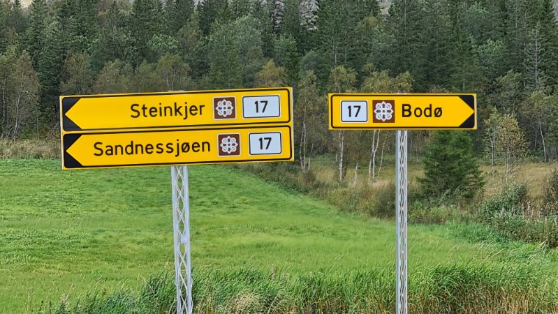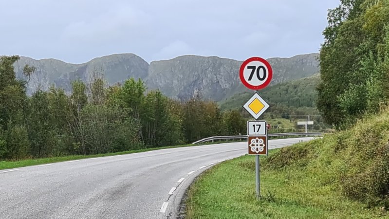 Wir starten früh von Steinkjer und nehmen die Landstraße 17 - eine wunderschöne Alternative zur E6 mit faszinierenden Ausblicken auf Meer und Inselreich - immer umrahmt von hohen Gebirgen.