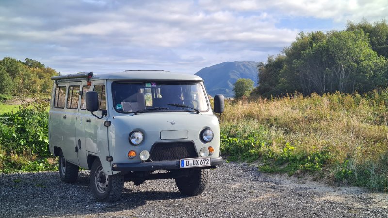 Wir lassen die Seele baumeln, checken ein paar organisatorische Dinge und kümmern um unsere Olga. (Klasse dass man im UAZ beim Motor-Check trocken bleibt, auch wenn es draußen regnet - Dank Motorhaube im Fahrzeug-Innenraum. :-P)