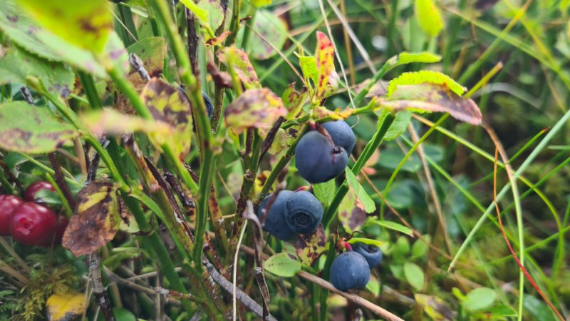 Die Rauschbeere wächst an kleinen Sträuchern und gehört zur Gattung der Heidelbeeren. Im regenreichen westlichen Skandinavien kommt sie verbreitet vor und verdrängt dort teilweise die klassische Heidelbeere. = Wieder was gelernt. 8-)