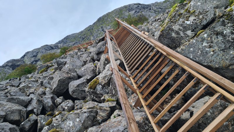 Hier erwartet uns eine schöne „Challenge“: Wir wollen die 1400 Stufen der „Vegatrappa“ rauf zum Ravnfloget nehmen.
