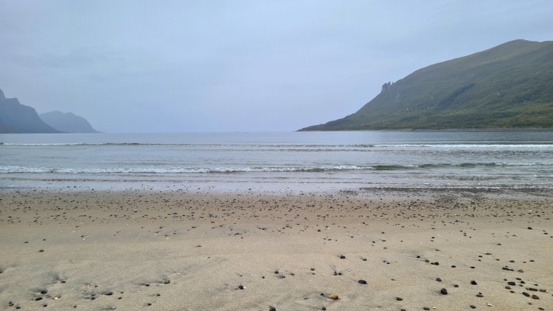 Etwas weiter nördlich - in Storvik - erleben wir einen herrlichen Sandstrand (in dem ich nur nicht baden gehe, weil es wie aus Eimern schüttet LOL).