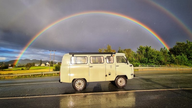 Es geht weiter Richtung Norden! Bei Kälte und Regen „schrauben“ wir uns mit mit unserer Olga über das Dovrefjell bis hoch nach Steinkjer zum Anfang des Kystriksveien. Unterwegs erleben wir mystische Aussichten, Nebel und Regenbögen!