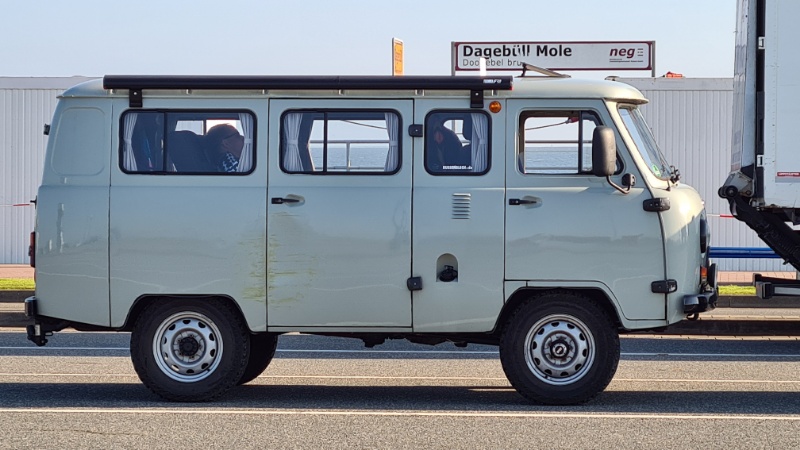 • Morgens trauen wir unseren Augen nicht, als wir am Hafen einen einheimischen UAZ Geländewagen sehen - mit feuerverzinkten Kotfügeln (deshalb hat er wohl „überlebt“ ;-) )
