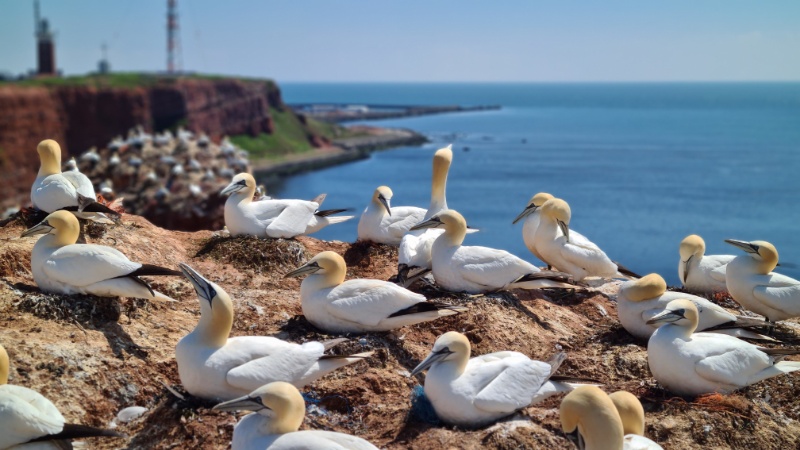 • Auf dem schönen roten (Feuerstein-)Felsen brüten viele Seevögel
